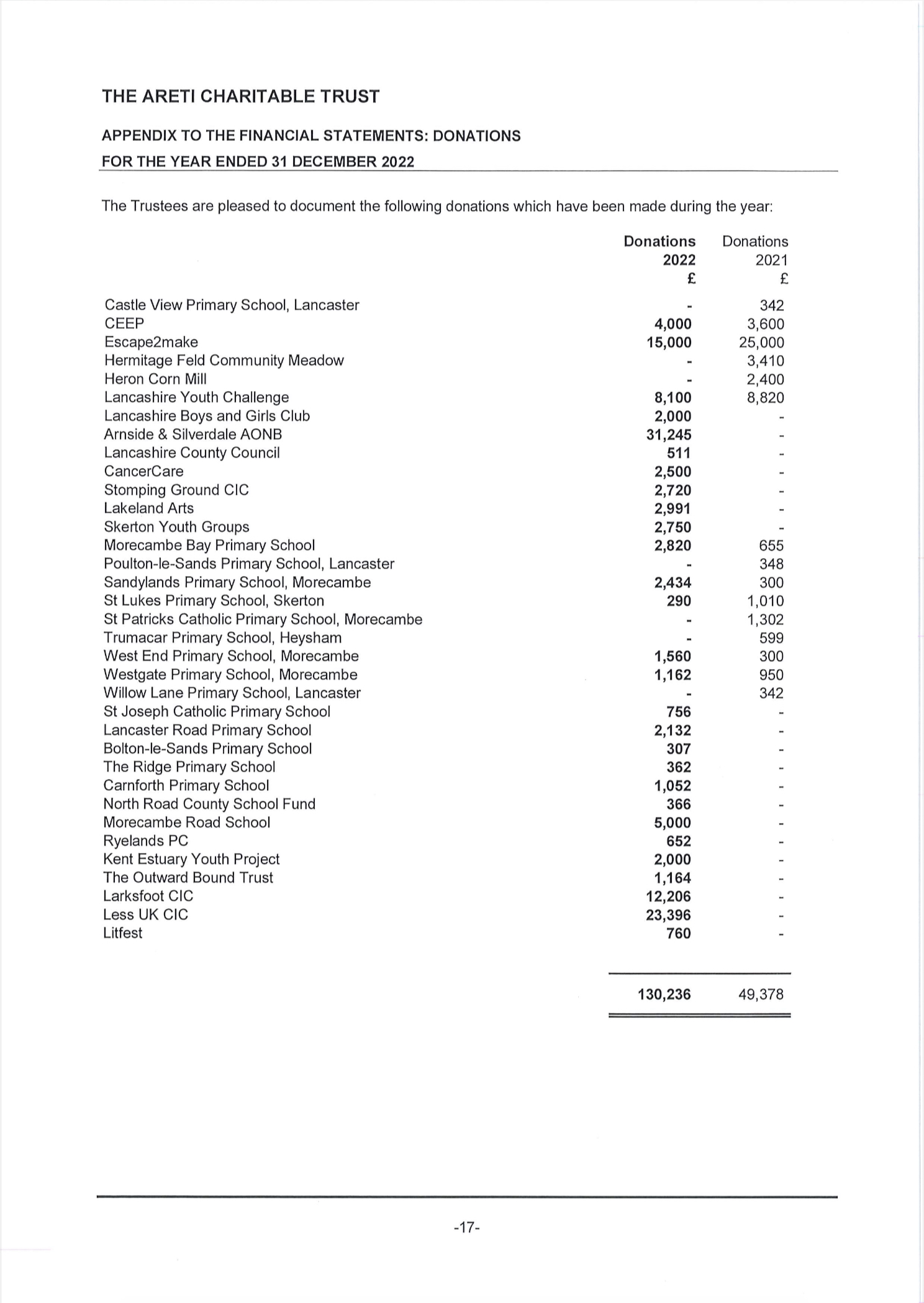The Areti Charitable Trust makes grants so that children and young people living in the area covered by Lancaster City Council and who are from challenging social and economic backgrounds may have opportunities to experience and learn more about the natural world as part of an organised activity.